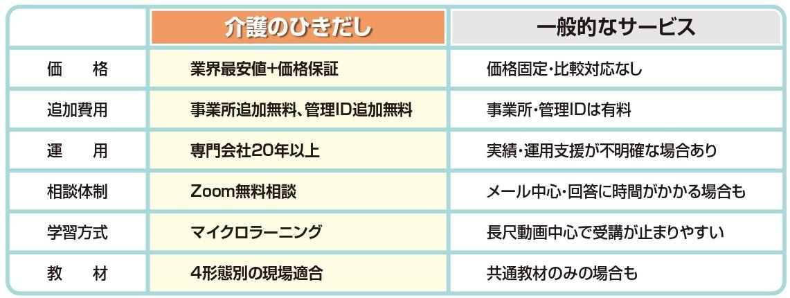A. 他社サービスと比較条件(研修範囲・人数・期間等)を揃えた上で、当社が高い場合は価格調整します。